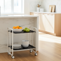 Desserte pliante BAUHAUS blanche avec roulettes – 2 niveaux et 4 positions